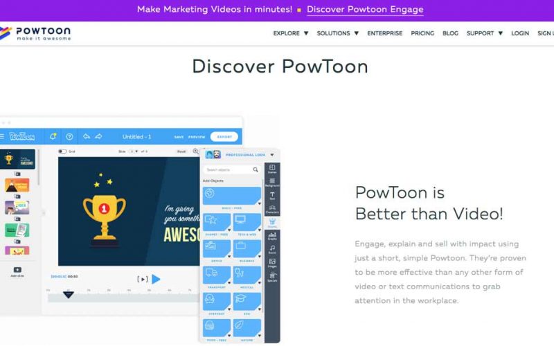 Si quieres crear un producto original, sin duda alguna PowToon es tu aplicación. Esta herramienta te permite crear presentaciones animadas con objetos, texto, imagen y diversos sonidos predeterminados.