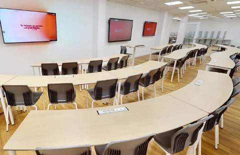 - Equipo para el profesor con pantalla interactiva digital y sistema de streaming con doble cámara, micro ambiente y pantalla soporte.