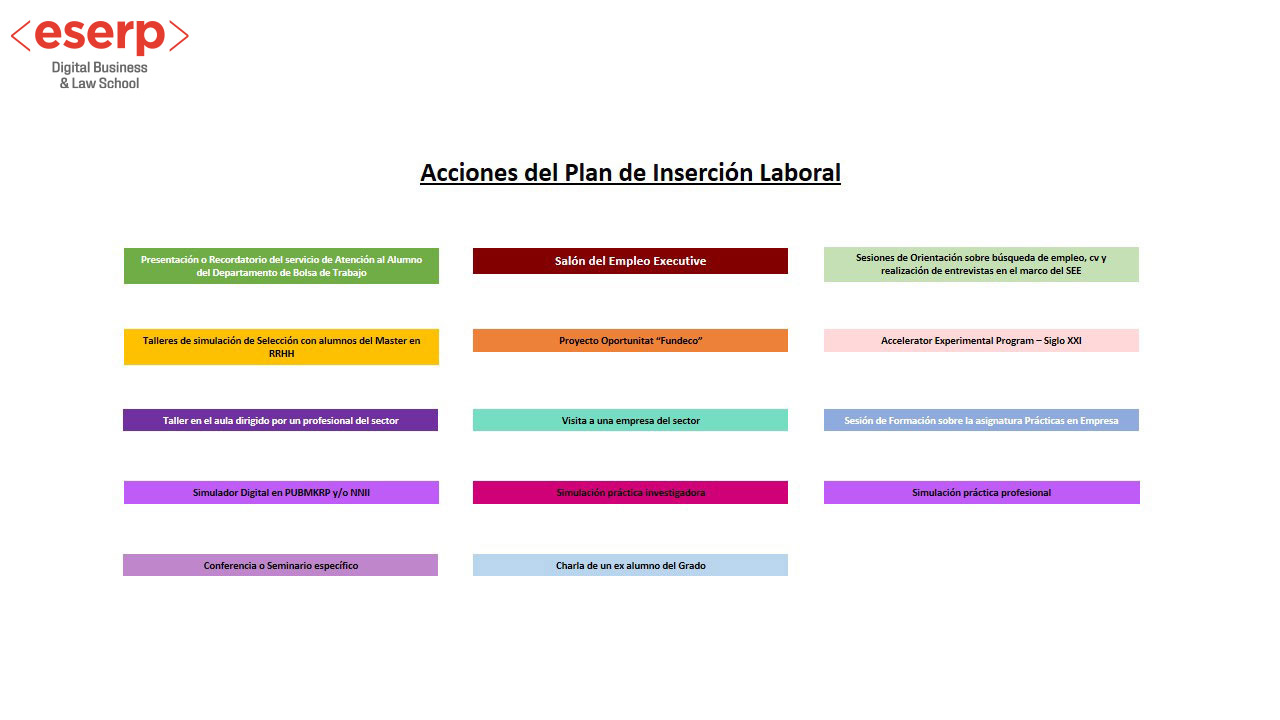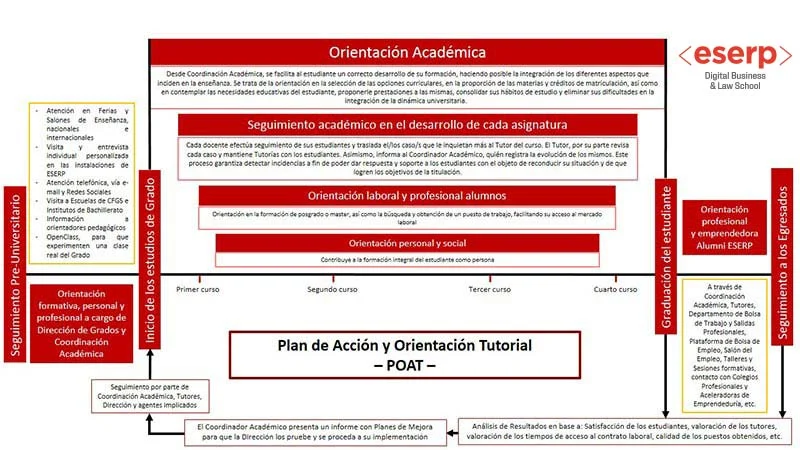 Eserp ha venido desarrollando desde la implementación de los Grados que actualmente están verificados, un Plan de Acción Tutorial propio del Centro y que actualmente, ha pasado a denominarse Plan de Orientación y Acción Tutorial (POAT) aprobado por Dirección General el 9 de enero de 2023.