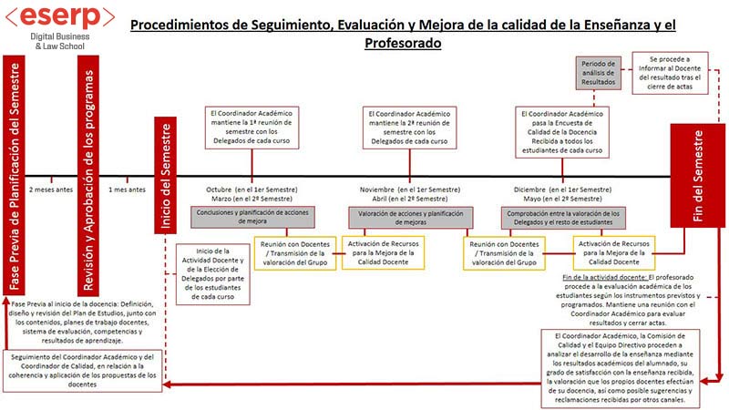 Eserp cuenta con un procedimiento por el que se evalúa y mejora la calidad del profesorado. Dicho procedimiento es aplicable a todas las Titulaciones Oficiales que ofrece eserp.